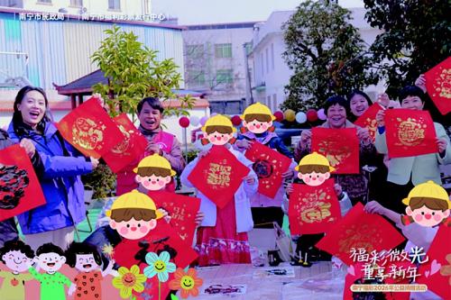 活动期间,南宁福彩志愿者服务队携手公益大使紫悦,一同深入南宁隆安县、横州市等地,开展了一系列丰富多彩的新年联欢活动。现场暖意融融,党员干部、志愿者与公益大使紫悦齐聚一堂,用真心陪伴与暖心关爱,与孩子们共度温馨又难忘的新年时光。“谢谢叔叔阿姨,这个新年福袋我好喜欢!”礼物发放环节,党员干部与公益大使紫悦纷纷蹲下身子,与孩子们亲切交谈,询问他们的学习近况与生活点滴。当孩子们接过满载心意的零食、学习文具时,一张张稚嫩的脸庞上,瞬间绽放出灿烂又纯真的笑容。除了物资捐赠,大家还围坐在一起,和孩子们共同包饺子、煮汤圆,在动手协作的温馨氛围中感受年味;现场还设置了航空模型体验、趣味灯笼手作、新春拓印手作等快乐互动环节,志愿者们陪伴在孩子们身边,一同参与游戏、动手创作,清脆的欢笑声此起彼伏,洒满活动现场的每一个角落,让这份公益温情在冬日里格外动人。