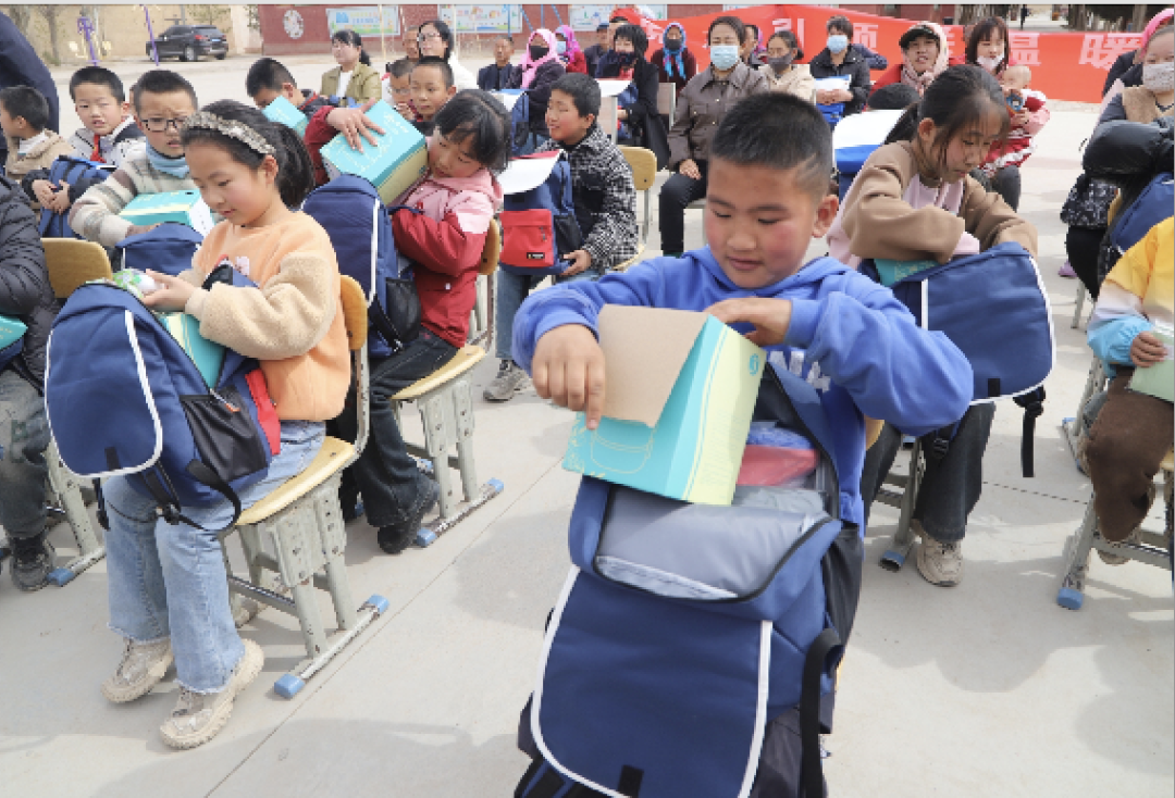 在新关小学捐赠仪式现场,武威福彩与中华社会救助基金会、望京公益服务中心一行,为新关小学的孩子们准备了学习用品、生活物资、安全防护三大类的爱心礼包690套,礼包中的书包、彩笔、文具套装承载着对孩子们学业进步的期许,保温杯、饭盒传递着对孩子们日常的关爱,雨衣、雨鞋则守护着孩子们的出行安全。每一件爱心物资都饱含对孩子们的深切关爱,既解决了孩子们的实际需求,也让孩子们的内心充满了温暖和希望。