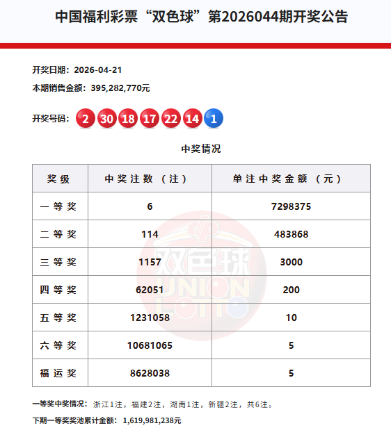 公益金 > 开奖丨双色球2026044期:北京中出二等奖14注,下期一等奖奖池16.19亿